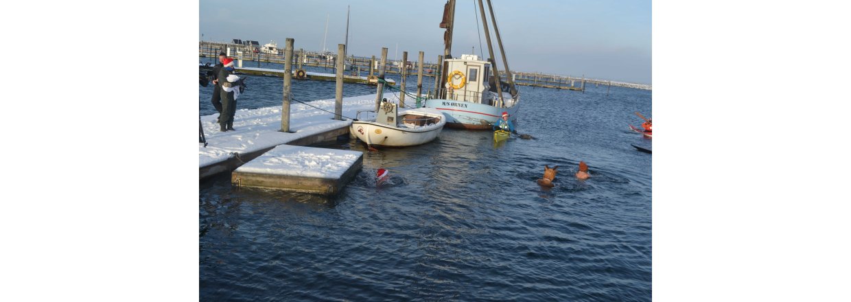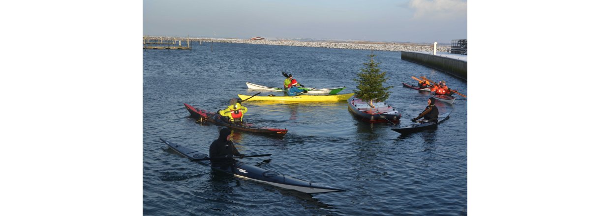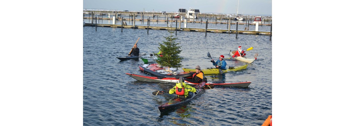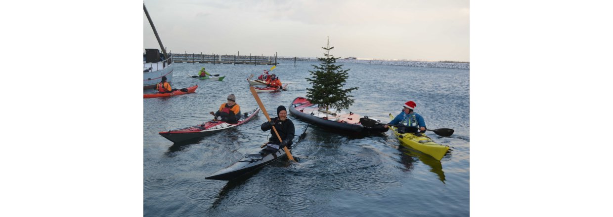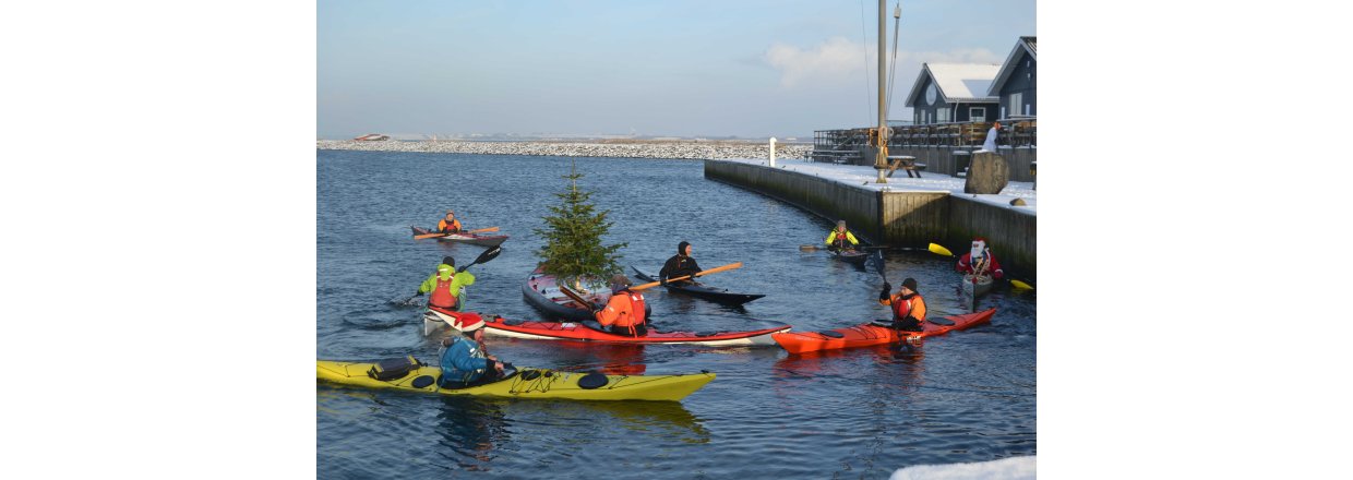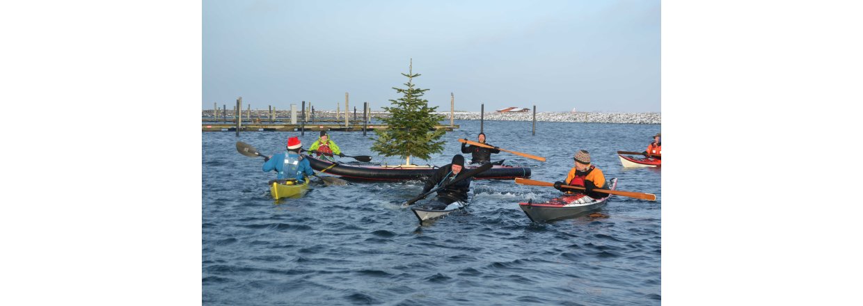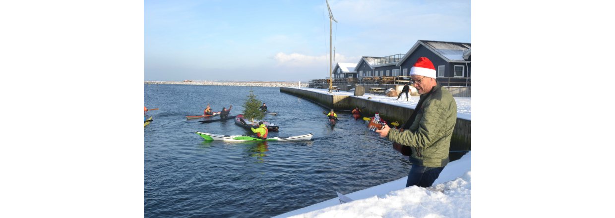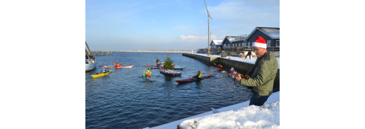 Den første af forhåbentligt mange juletræsfester i hyggeligt fællessakb med Handbjerg Marina og Handbjerg Vinterbadeklub blev fejret den 17. december 2022 - her var der rullerier fra seje kajak freaks og modige vinterbadere, der endda havde luft til at synge i det kolde vand.