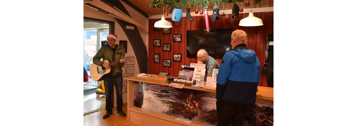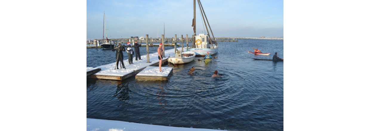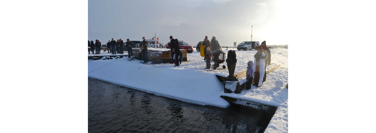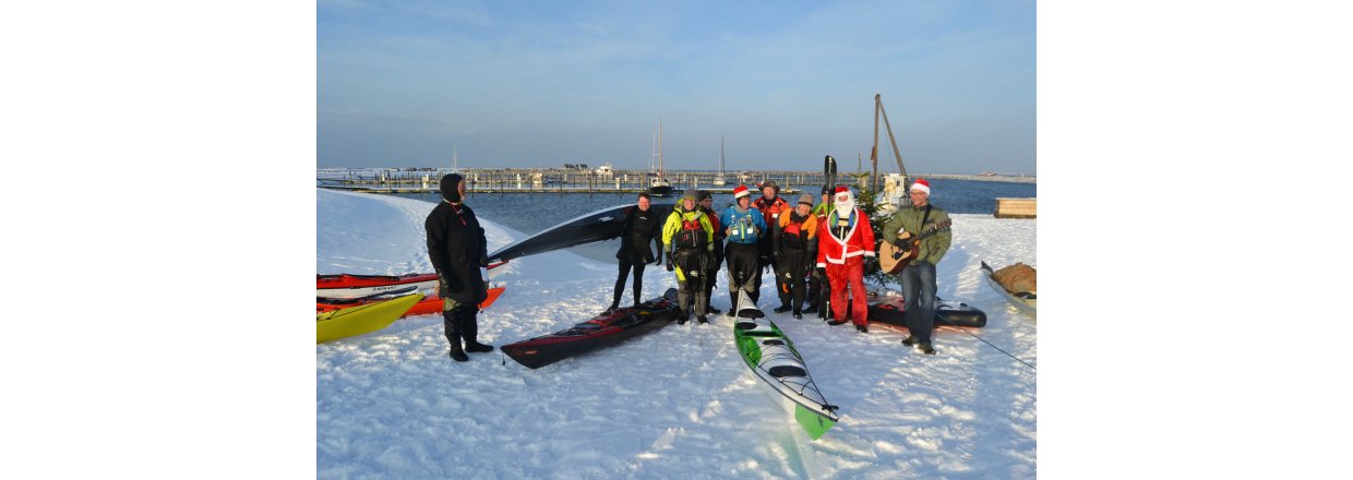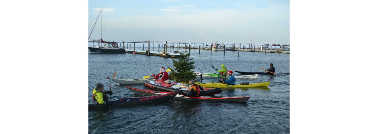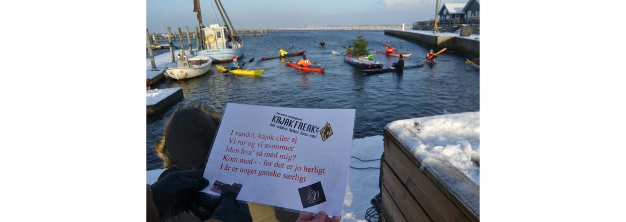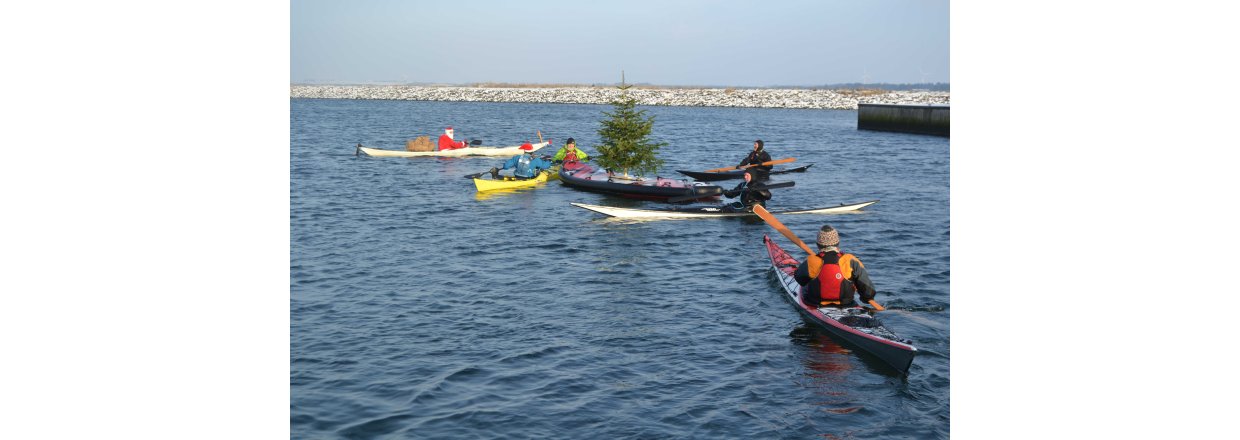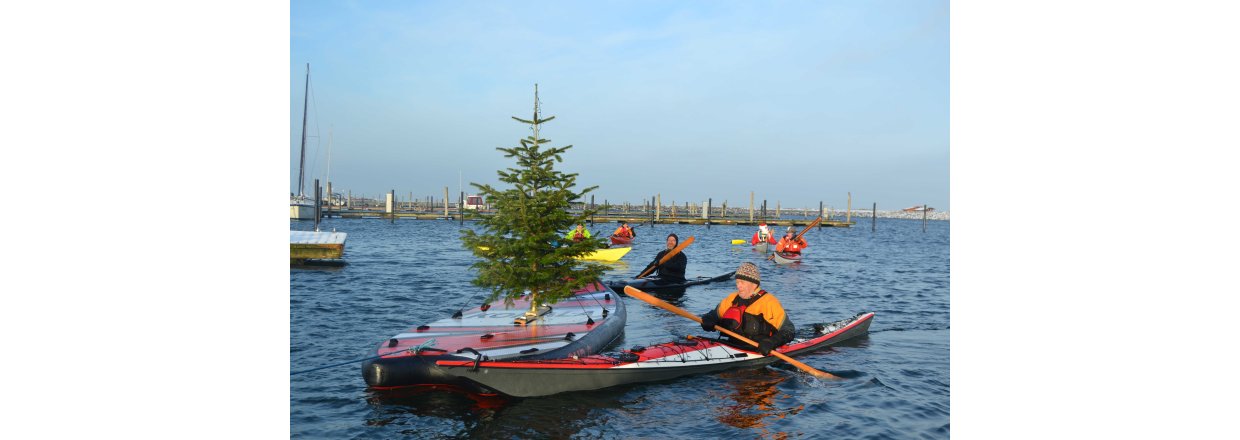 Den første af forhåbentligt mange juletræsfester i hyggeligt fællessakb med Handbjerg Marina og Handbjerg Vinterbadeklub blev fejret den 17. december 2022 - her var der rullerier fra seje kajak freaks og modige vinterbadere, der endda havde luft til at synge i det kolde vand.