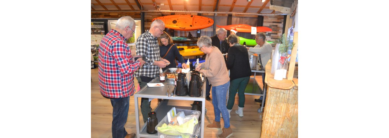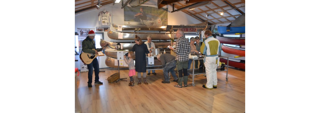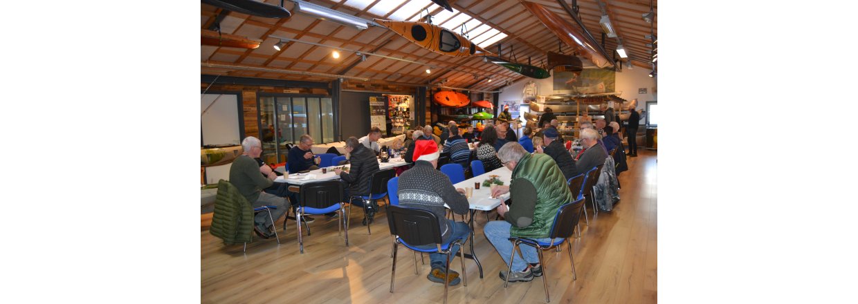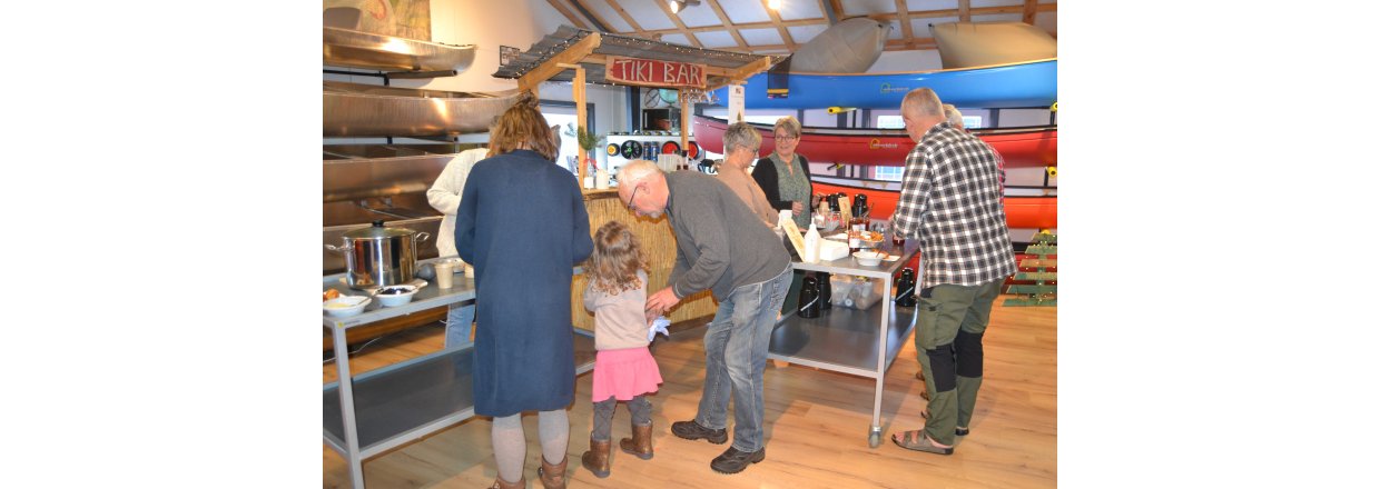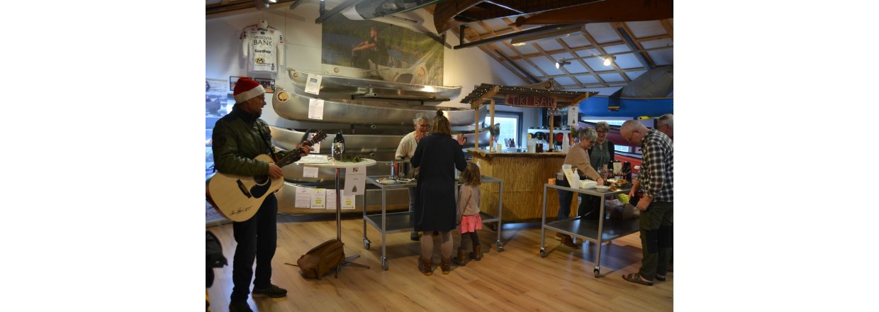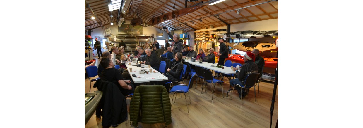Bagefter stimlede vi sammen i Kajak Freaks hyggelige kanohal og Tiki baren åbnede: Der blev hygget med mere skønsang leveret af vores fantastiske Poul Ilsøe, der til daglig er musikterapeut - og guffet æbleskiver og gløgg til den store guldmedalje.